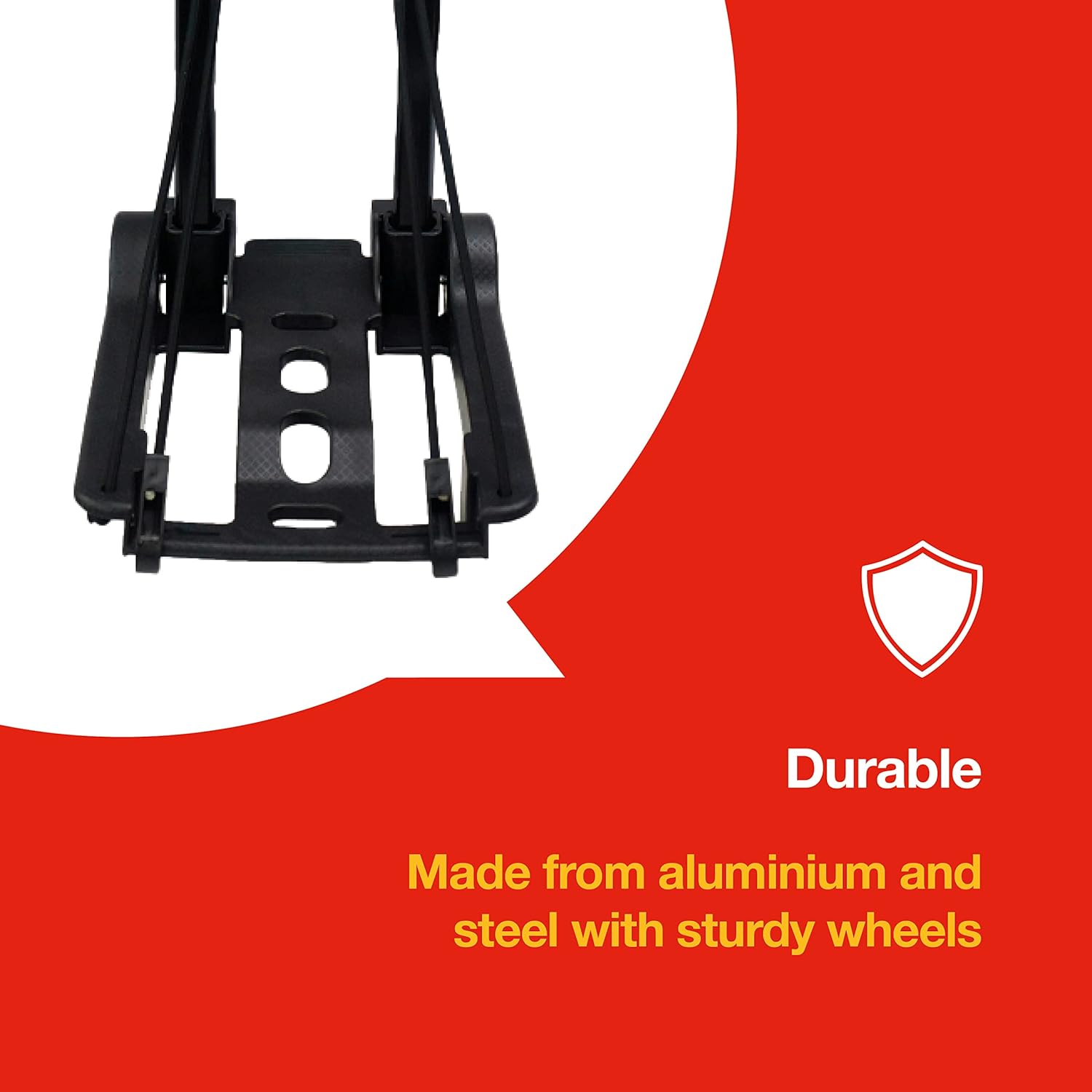 This folding sack truck combines lightweight aluminium and robust steel construction, supporting loads up to 25kg. Its telescopic, foldable design ensures compact storage and convenient transport. Equipped with a soft, rounded grip handle and synchronized toe plate and wheel operation, it offers effortless handling and precise manoeuvrability.