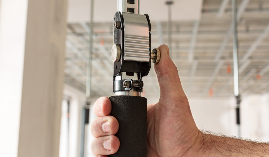 - The application is also on slopes due to continuously swivelable contact surfaces of -45° to +45°. Easy, safe handling due to a telescoping and locking inner pipe as well as an outer pipe that can be turned by the foam grip.