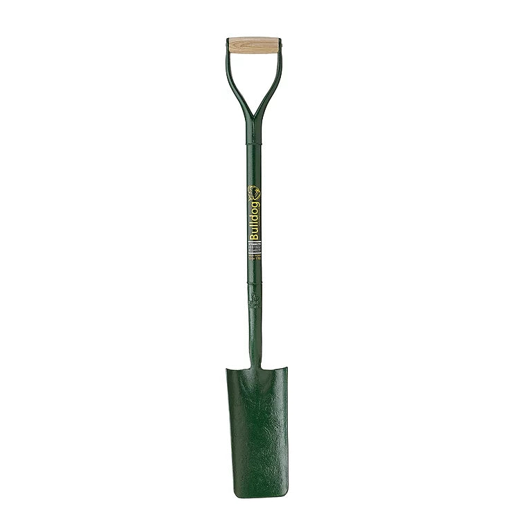 Its slightly dished blade and rounded cutting edges make it ideal for digging narrow trenches in clay and similar materials.