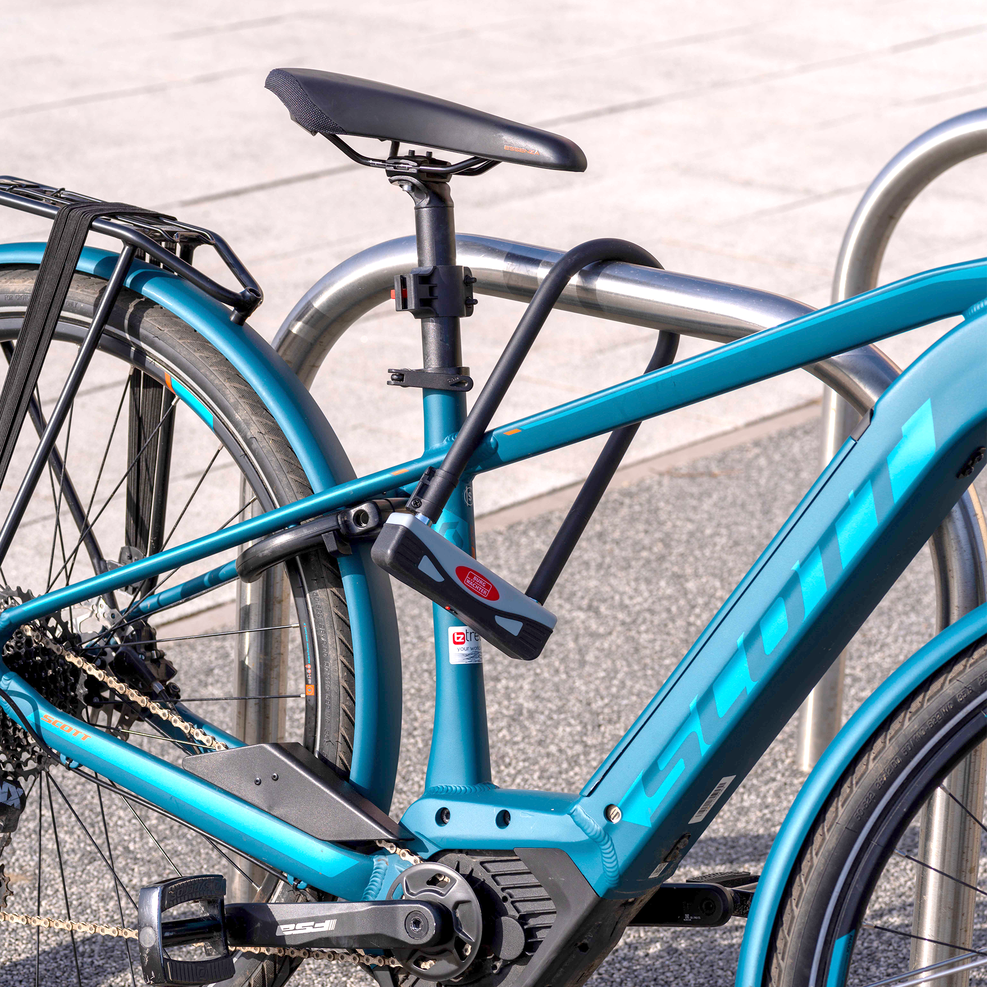 Available with a standard 210mm shackle or an extra-long 280mm variant for extra reach. The supplied bracket attaches easily to the bicycle frame and makes taking it on the move easy – no need to remember to place it in your bag.