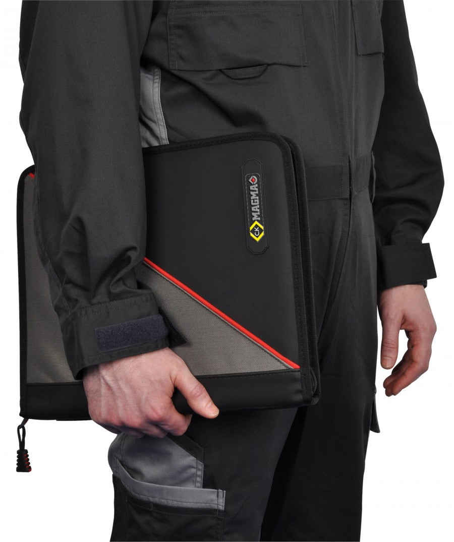 This professional organiser has a convenient interior segmentation with an A4 portrait pad, business card compartments and dual pen holder that will keep your contractor very tidy and save time and frustration.Tote tool bag features