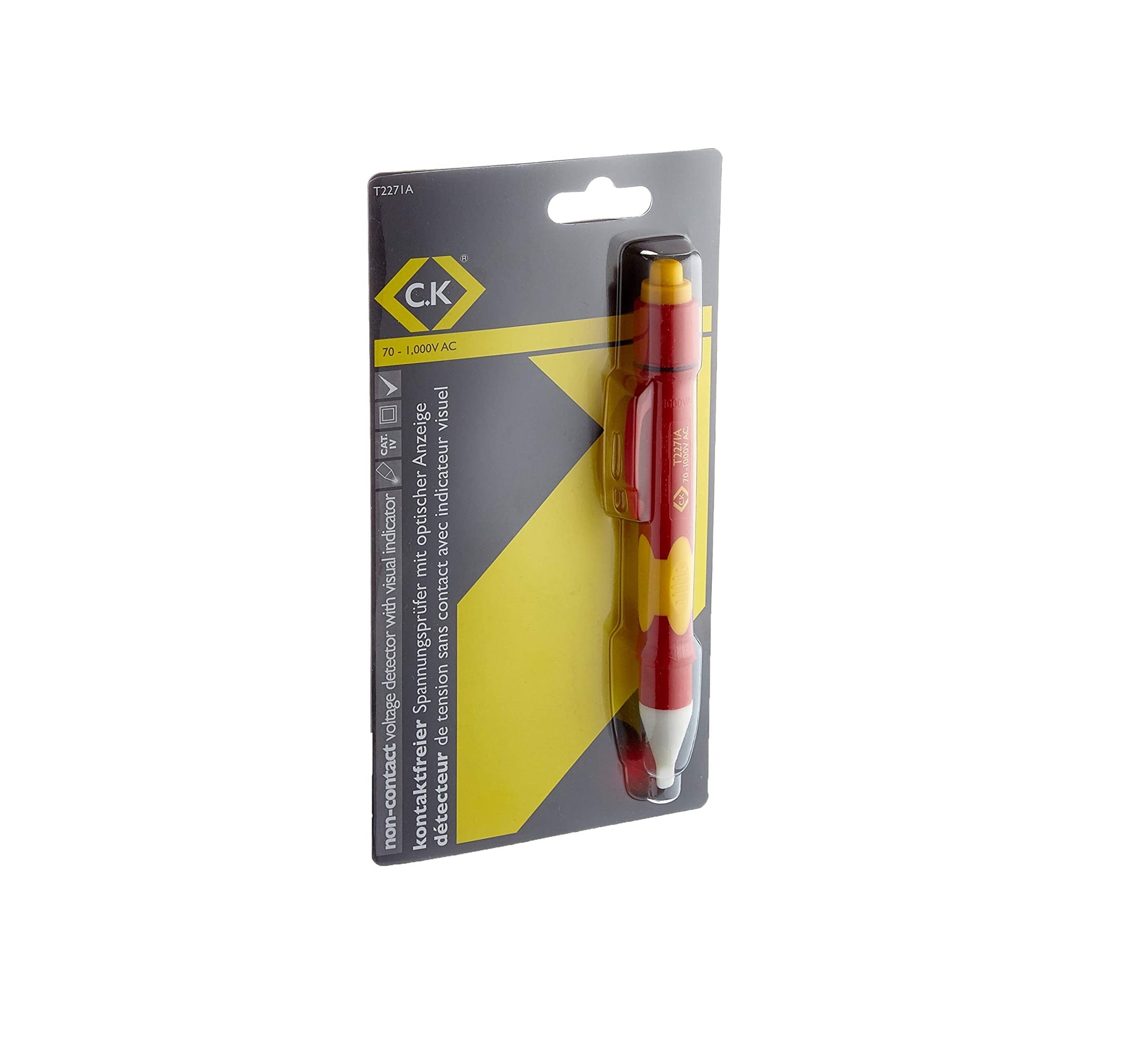 Suitable for non-contact AC voltage tests, e.g. earthing/ground connection checks, proper connection checks, broken wire detection, etc. Bright red LED illumination on detection of AC voltage. Double insulated to ensure safe use near live circuitry. Ergonomic, dual component body construction with a handy pocket clip.