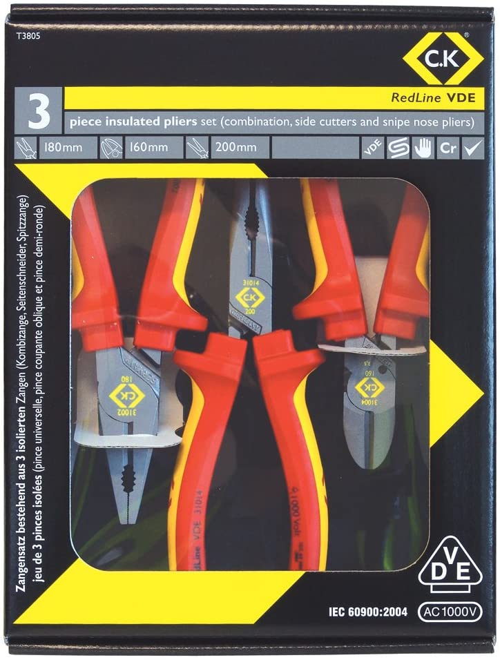C.K T3805 VDE Pliers and Cutter, insulated plier set, Set of 3 Pieces