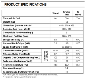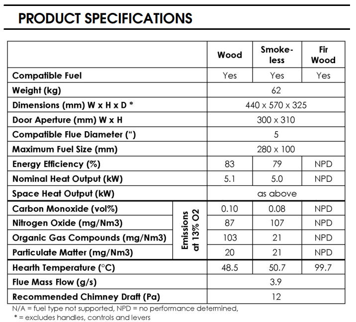Clarke 5.1kW Cast Iron Stove Specifications: