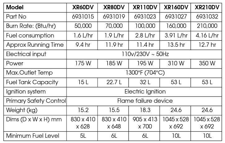 - High efficiency air and fuel filters. - Automatic flame failure cut out. - Variable heat control with thermostat - heater cycles on/off as heat is required
