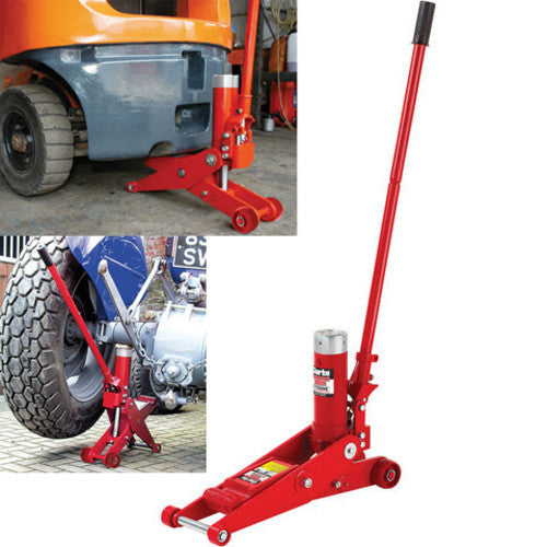 - 5 Tonne bottle (cylinder) jack lifts to 730mm; ideal for tractors and other high clearance vehicles