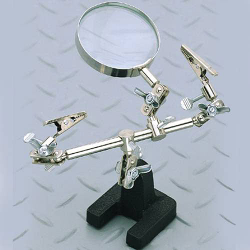 This one, sure and steady includes multipositional crocodile fingers for a secure hold plus a magnifier for improved viewing of jewellery, electronic components and other miniaturised assemblies.