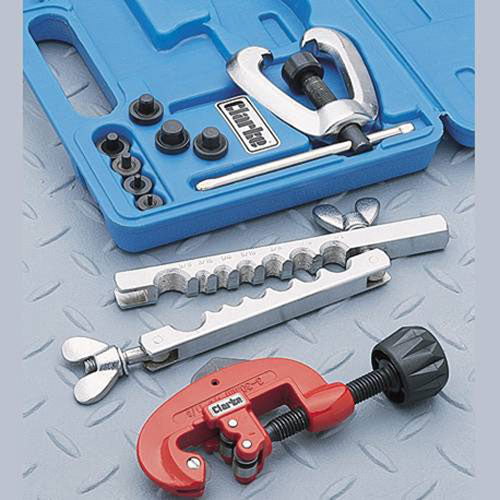 A professional pipe flaring and cutting kit for automotive and specialist plumbing applications. Suitable for various sizes of copper, brass, and thin wall aluminium tube.