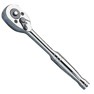 This slim style professional ratchet with contoured handle and oval head design is manufactured from strong chrome vanadium steel, hardened, tempered and with a highly polished deep chrome finish.
