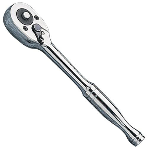 This slim style professional ratchet with contoured handle and oval head design is manufactured from strong chrome vanadium steel, hardened, tempered and with a highly polished deep chrome finish.