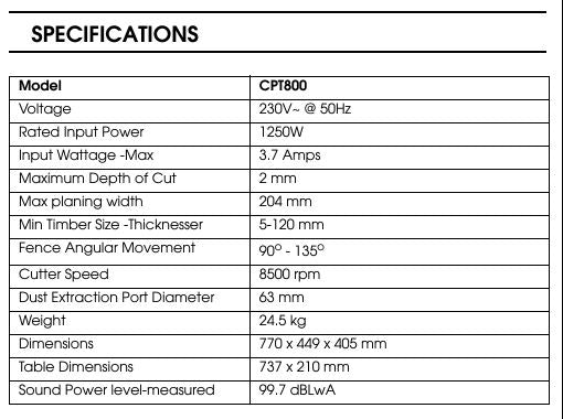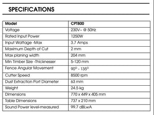 This 203mm wide version not only smoothes flat most types of hard, soft & processed timbers - leaving them free of rough patches and burrs - its also sizes timber so its' straight, compact & true. And for real convenience, the CPT800 is compact and unobtrusive - ideal for bench-top use in the home workshop.