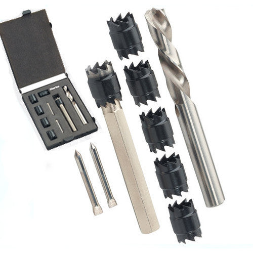 - Set includes 1 x M35 spot weld drill (8mm dia), 1 x mill cutter (10mm dia), 6 x double ended hole cutters and 2 x pilot pins