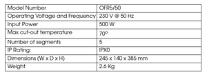 Lightweight and portable, this small 5 finned, 500W oil filled radiator is ideal for office, home or workshop use. Featuring an adjustable thermostat, 6 heat settings, this radiator is perfect for heating small areas quickly and efficiently. A fantastic source of cheap, constant heat, to be used anytime, anywhere.