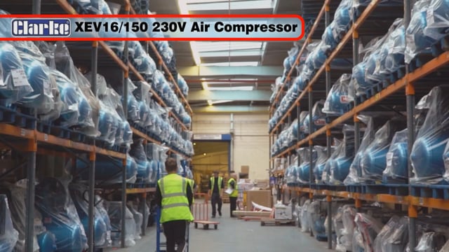 Clarke XEV16/150 (OL) 14cfm 150Litre 3HP belt-driven Industrial Air Compressor, 230V
