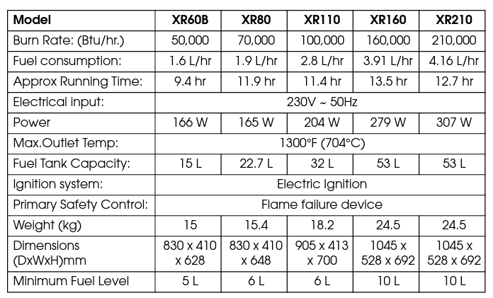 - High efficiency air and fuel filters. - Automatic flame failure cut out. - Variable heat control with thermostat - heater cycles on/off as heat is required