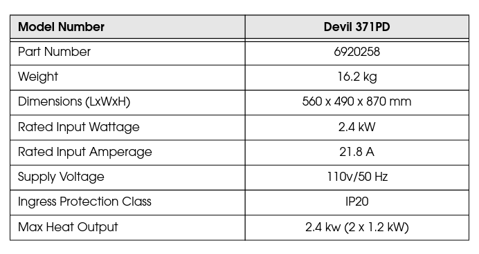 Product manual of Clarke contractor devil 371PD 2.4kW quartz halogen infrared heater (110V)