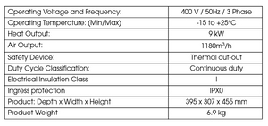 Product manual of Clarke devil 9000PTC 9kW fan heater (400V)