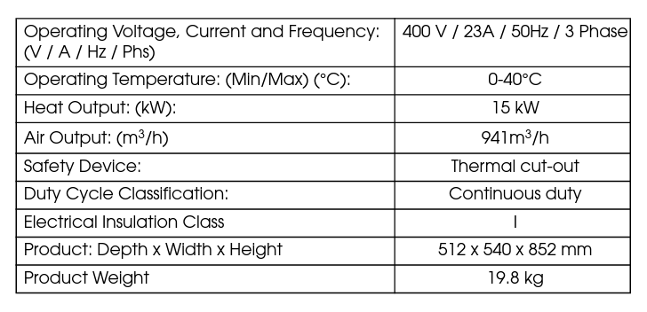 Product manual of Clarke devil 7015 15kW industrial electric fan heater (400V)