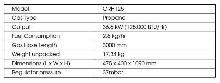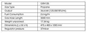 Product manual of Clarke GRH125 36.6kW portable radiant propane gas heater