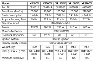 - Stainless Steel combustion chamber - High efficiency air & fuel filters. Automatic flame failure cut-out