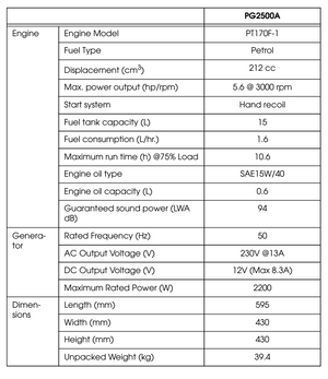 Product manual of Clarke PG2500A EURO5 2.2kVA 230V Open Frame Petrol Generator