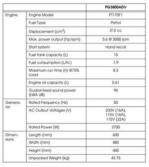 Product manual of Clarke PG3800ADV EURO5 3kVA open frame dual voltage (230/110V) petrol generator