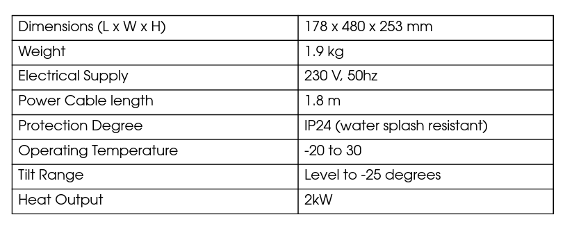 Quartz Halogen infrared heaters provide energy efficient heating as the infrared technology produces instant heat with minimal initial warm up time. Heat is supplied where needed to warm people or objects rather than wasting