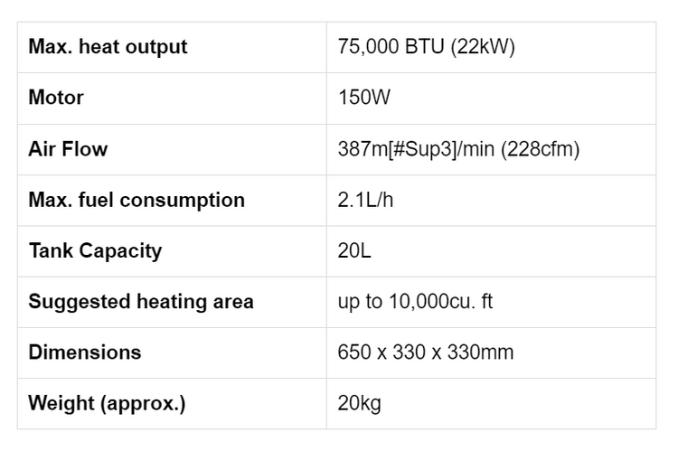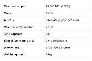 - The clean burning unit operates on both kerosene and diesel, delivering 75,000 BTU/hr.