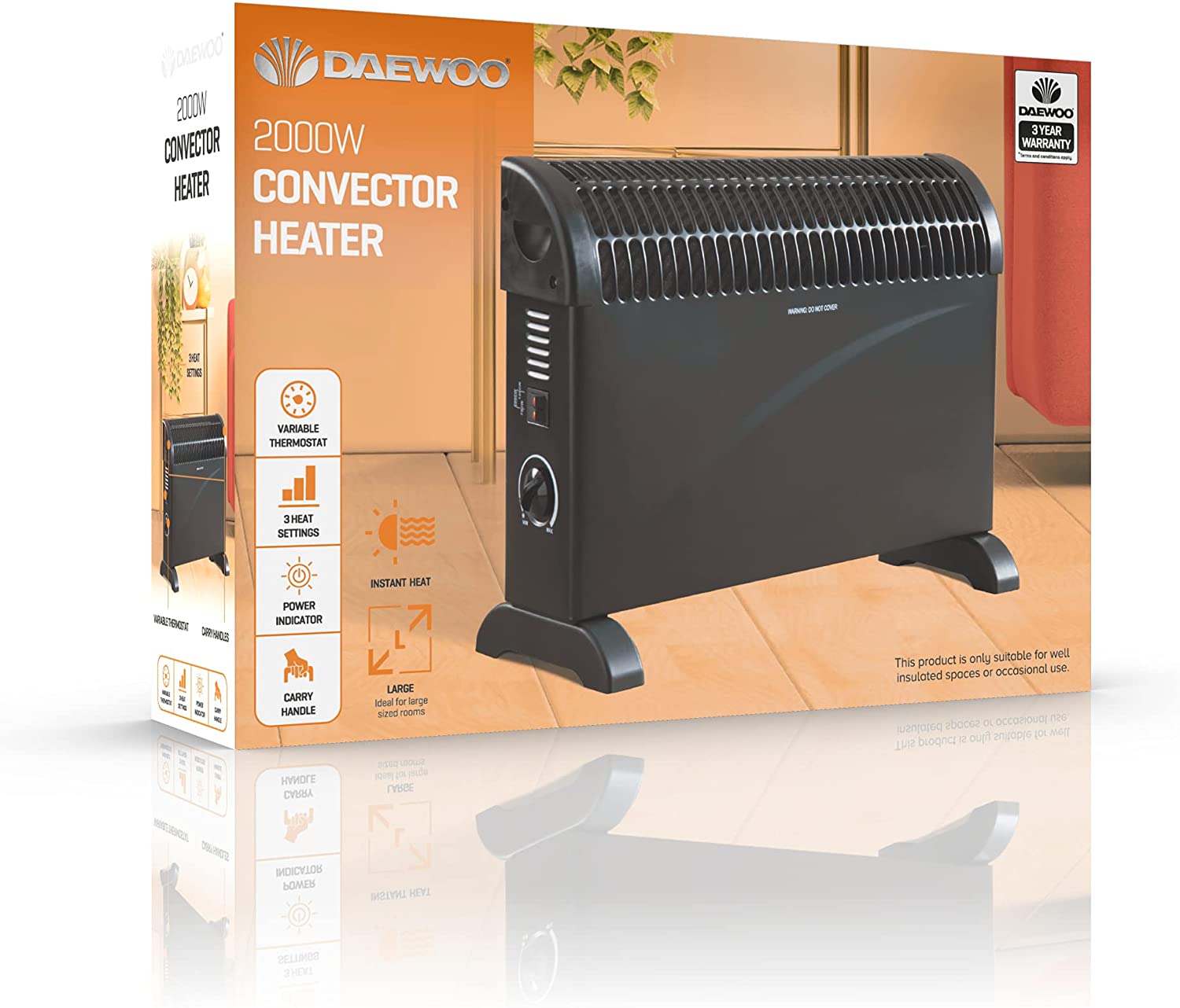 - RAPID HEAT - That's to its 2000w of power, this Daewoo convector heater gets to power lightning fast, getting your room up to temperature in no time