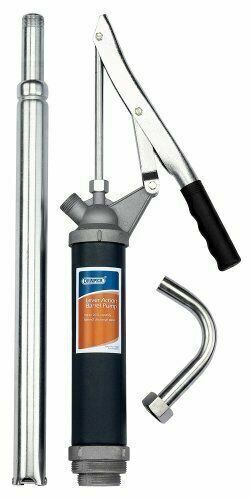 For use with steel barrels capacity 50 to 250L maximum. Aluminium diecast head and bung nut with zinc plated curved discharge spout 19.5mm diameter and lever handle. The telescopic suction tube (supplied) attaches to base of pump to reach bottom of barrel.