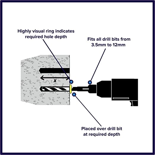 DrillStop is a drill depth indicator. To accurately set drill depth, simply place a DrillStop ring over the drill bit at the required depth, then drill until you reach the ring.