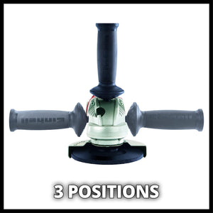 The additional handle, which can be fixed in three positions, can be adjusted precisely to the respective workpiece, so that perfect hold is guaranteed for safe and quick working. Thanks to the cable clip for fixing the coiled cable, the TE-AG 230/2000 is neatly and securely stowed away in no time.