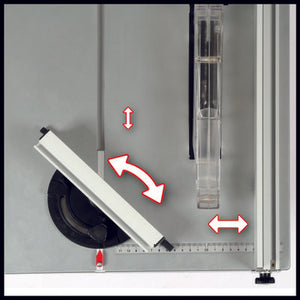 - Including an angle stop (+/- 60°) for easy doing mitre cuts