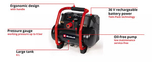 Features of Einhell Cordless Air Compressor TE-AC 36/150