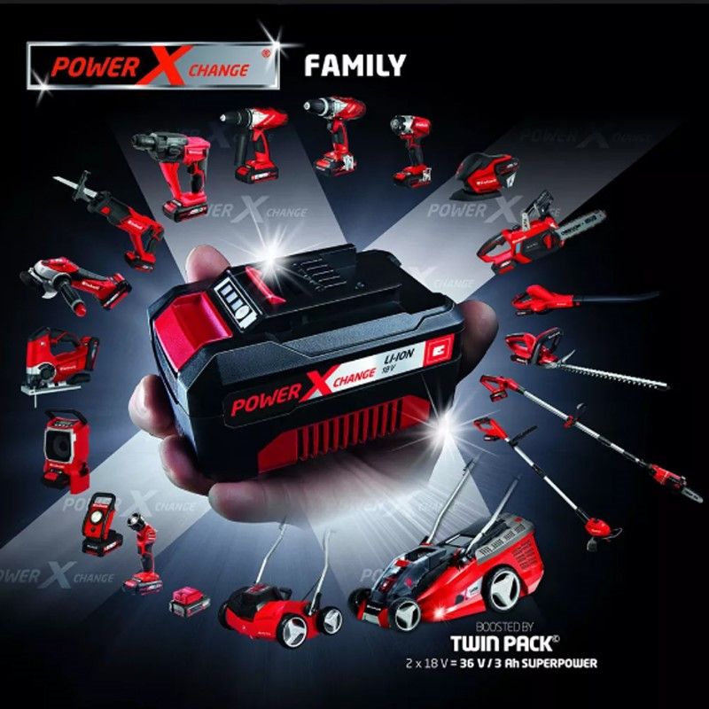 The Einhell brushless twin pack includes the TE-CD 18 Lithium-ion BL, TE-CI 18 lithium BL, 1 x 4.0 Ah battery, 1 x 2.0 Ah battery and a soft bag.