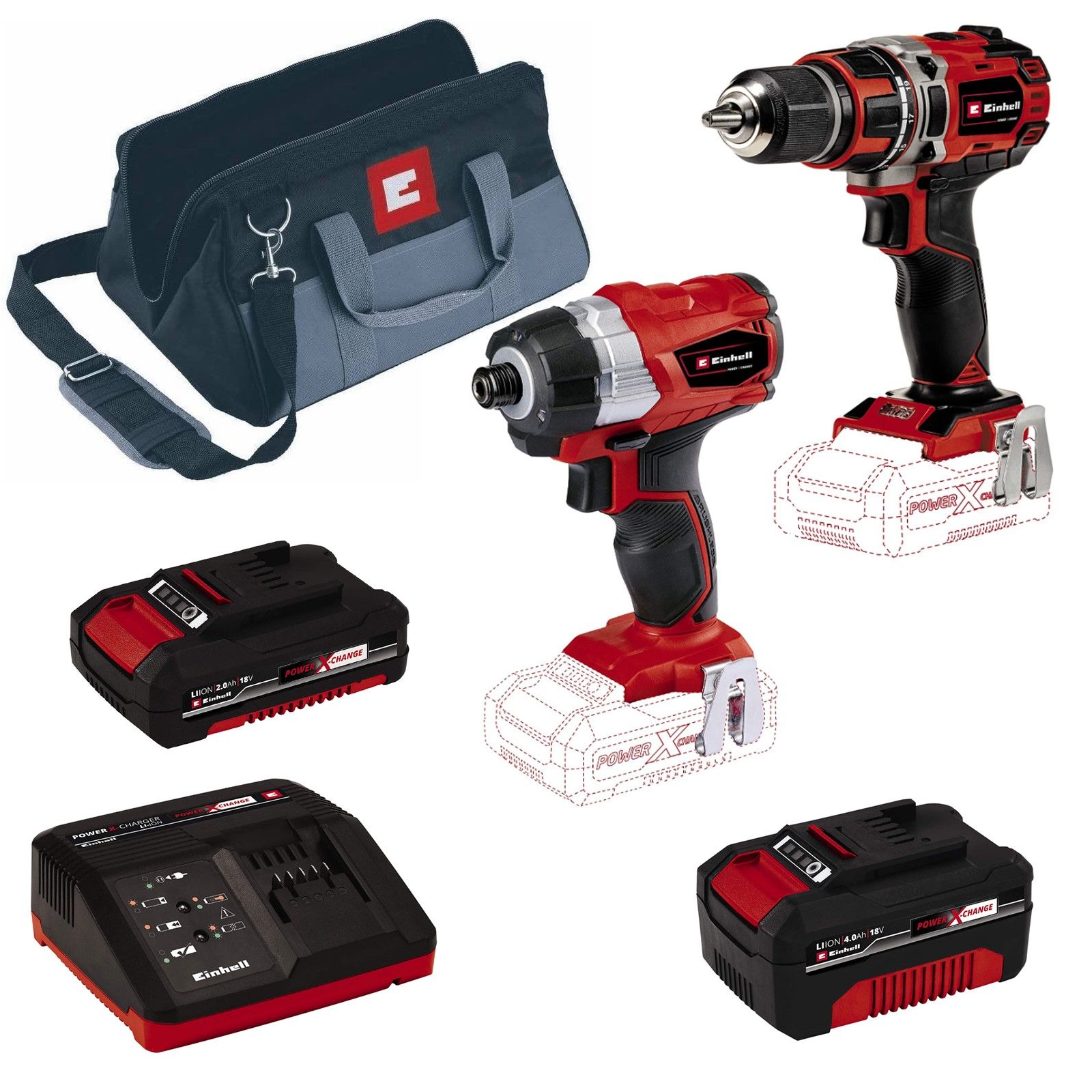 Einhell Power X-Change 18V Combi Drill and Brushless Impact Driver 60Nm, Battery and Charger and Tool Bag