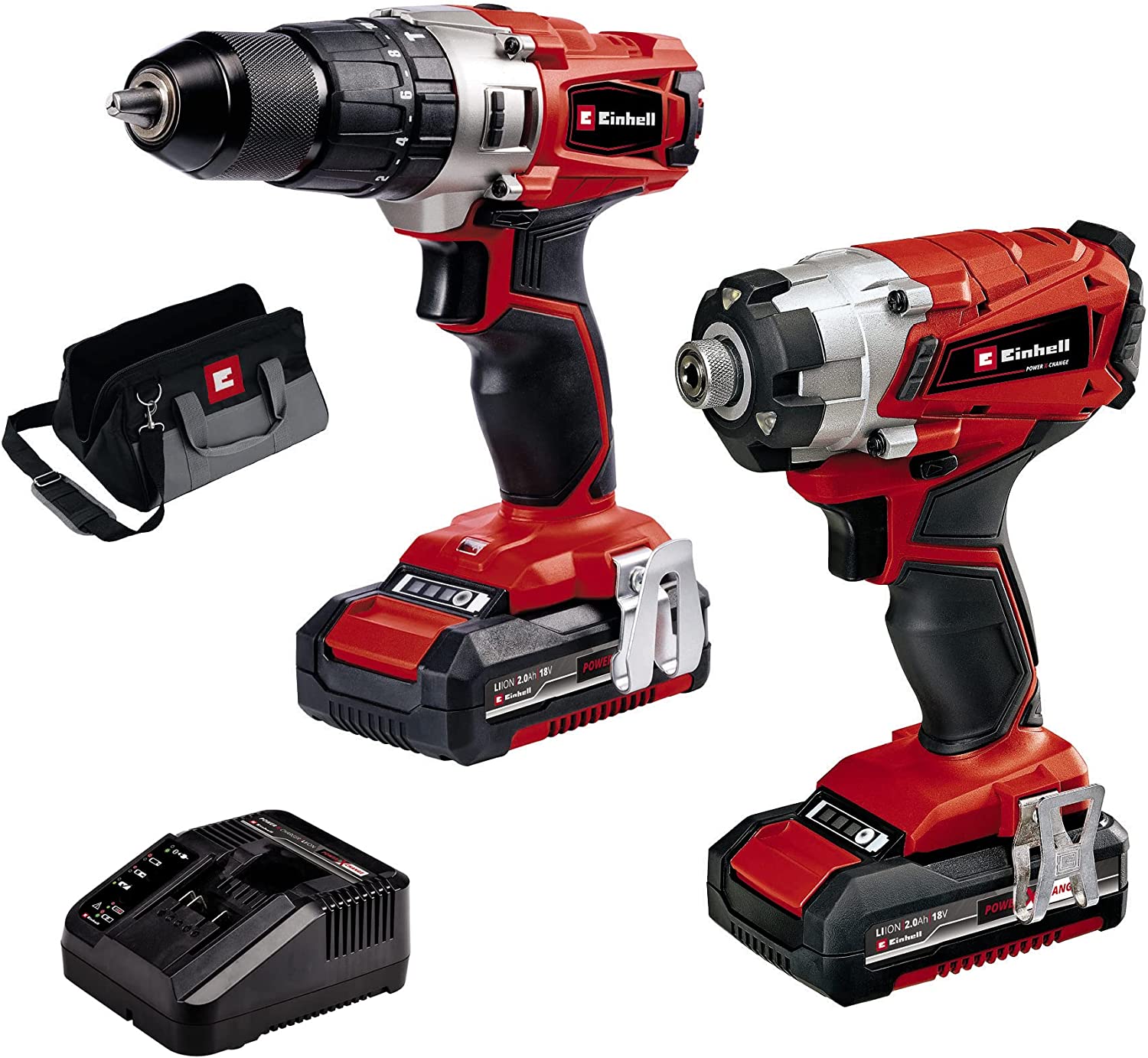 Einhell Power X-Change 18V Cordless Drill And Impact Driver Set With 2 x Batteries, Charger And Storage Bag