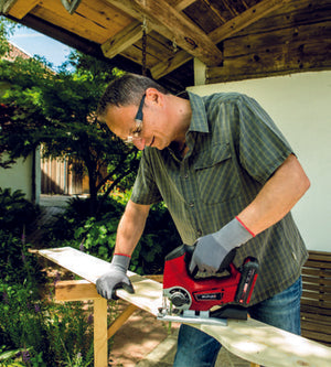 The chip guard and attachable cutting line guide enable precise cuts without splintering. An LED light for illuminating the cutting area together with the practical dust blow-off function ensure that the user has a perfect view of the workpiece at all times. Supplied without battery and charger. These are available separately.