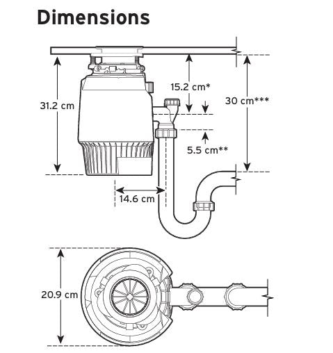 Specifications of the Insinkerator Evolution Plus 750 EC Food Waste Disposal, undersink unit: