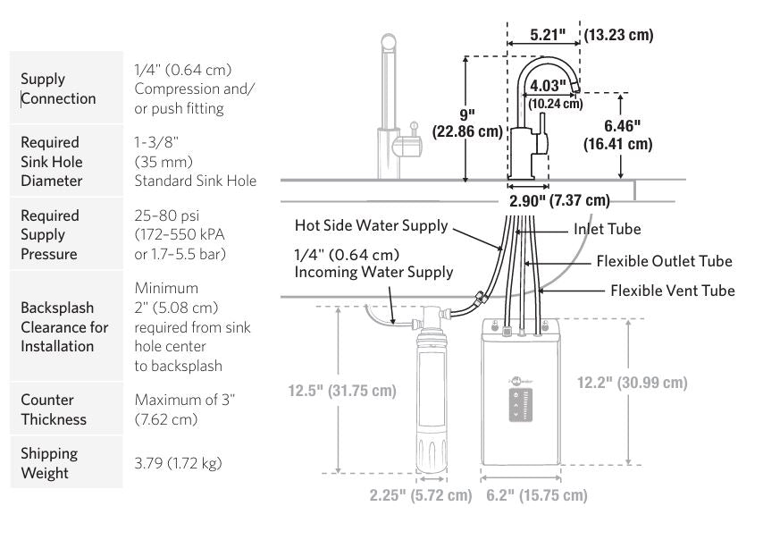 - Hot water faucet - dispenses near-boiling water -For use with an InSinkErator instant hot water tank and filtration system (sold separately).