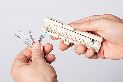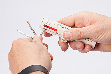 - Special sheating and insulation stripping tool for PVC-insulated CAT and twisted pair cables,