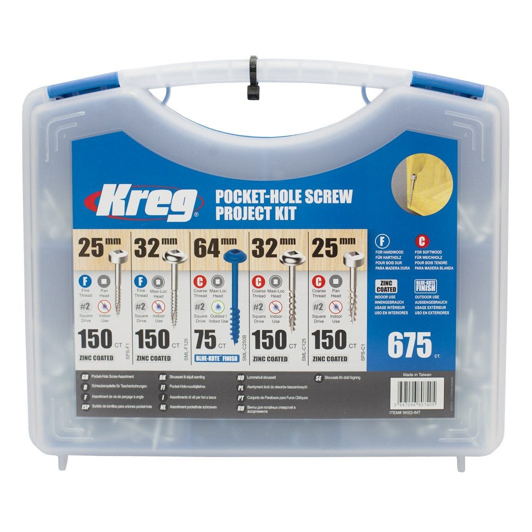 In this Pocket-Hole Jig 720 Promo Kit, you get the Kreg Docking Station material support wings with a repeatable stop, a Pocket-Hole Jig Clamp to secure your jig to any workstation, a 76 mm Wood Project Clamp with Automaxx™, 210 Kreg pocket-hole screws, an SK03 screw kit and a free project plan so you can start building right away.