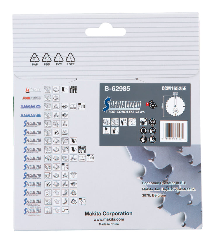 Makita B-62985 Circular Saw Blade, Efficut, TCT, 165x20mm, 25T