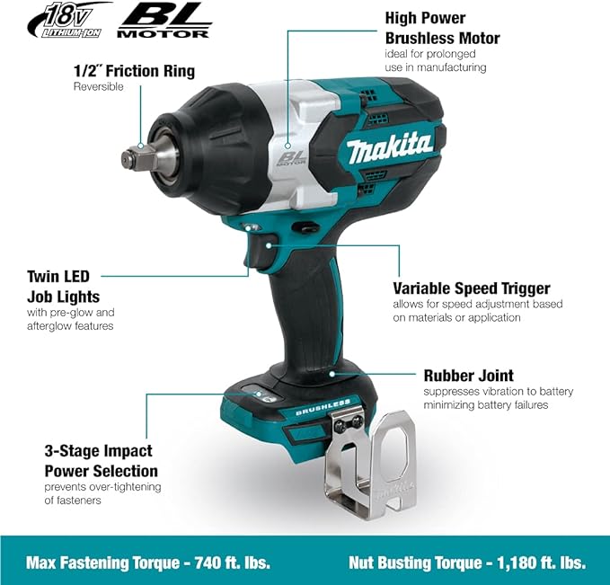 Makita DTW1002Z 18V Li-Ion LXT Brushless Impact Wrench - Batteries and Charger Not Included