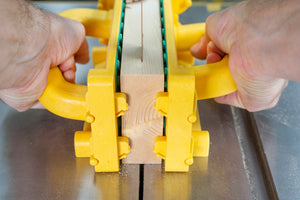 Use the 90-degree Flip Guide for veneers and resawing on the bandsaw, or for beaded face frames and other special profiles against the router table fence. No matter which way you flip it, smart hooks still fall into place.