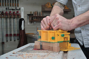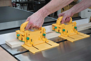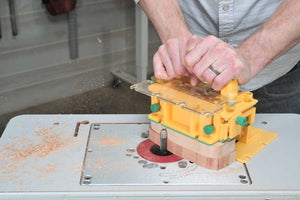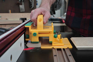 Using in Table saws: The GRR-RIPPER was built for the table saw. It acts as a moving blade guard, shielding your hands from the saw blade through the entire cut. Right out of the box, the GRR-RIPPER can cut stock down to ¼” x ¼”. Because it provides 3 directions of control, your cuts will be cleaner and more precise.