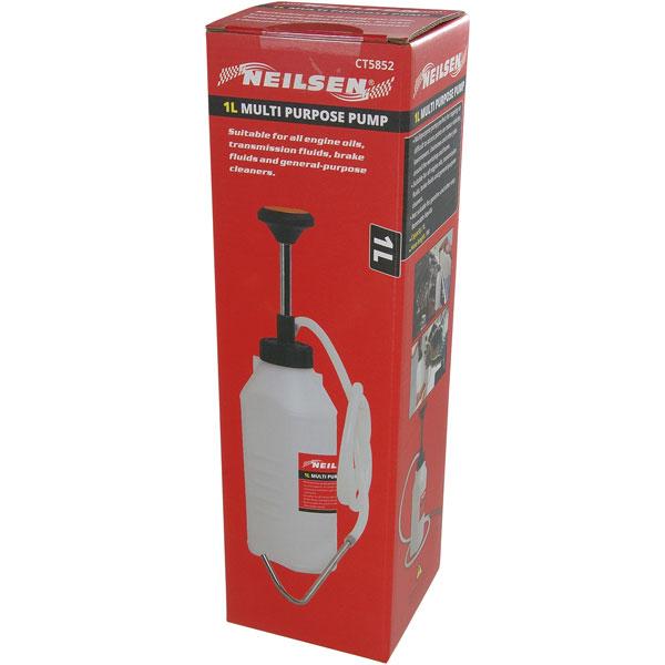 - Multipurpose pump perfect for topping up difficult to access points on motor vehicles, lawnmowers, chainsaws and other jobs around the workshop and home.