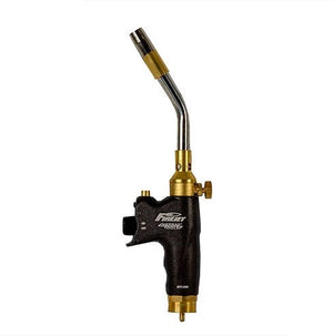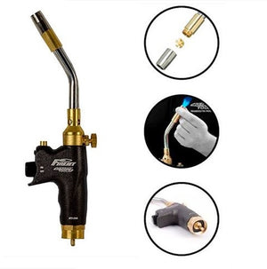 - Efficiently designed 'after burn' nozzle minimizes residual heat at the tip for safer handling. The nozzle tip can be easily removed to access the solid brass diffuser for cleaning, a useful feature in case of accidental flux or solder ingress while heating a joint from underneath. The brass cylinder connection is corrosion-resistant, preventing stripped threads when attaching or removing the gas cylinder. The needle flame regulator valve allows for precise flame control. Instant Piezo flame ignition and connection for disposable (CGA600) gas cylinders.