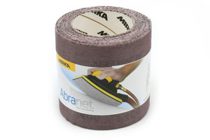 Abranet Rolls 115mm x 10m. Abranet is a revolutionary new sanding material for dust-free sanding. This unique patented sanding material contains thousands of small holes, making it possible to effectively vacuum dust and other particles away without clogging the disc surface. The result is a very uniform sanding pattern and a perfectly smooth surface. Since the amount of airborne dust has been minimised, the work environment is remarkably improved. Abranet has been developed for sanding filler, primers, lacquers, composite materials and a large number of other materials. This is a durable long-lasting sanding material.