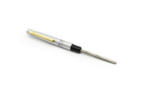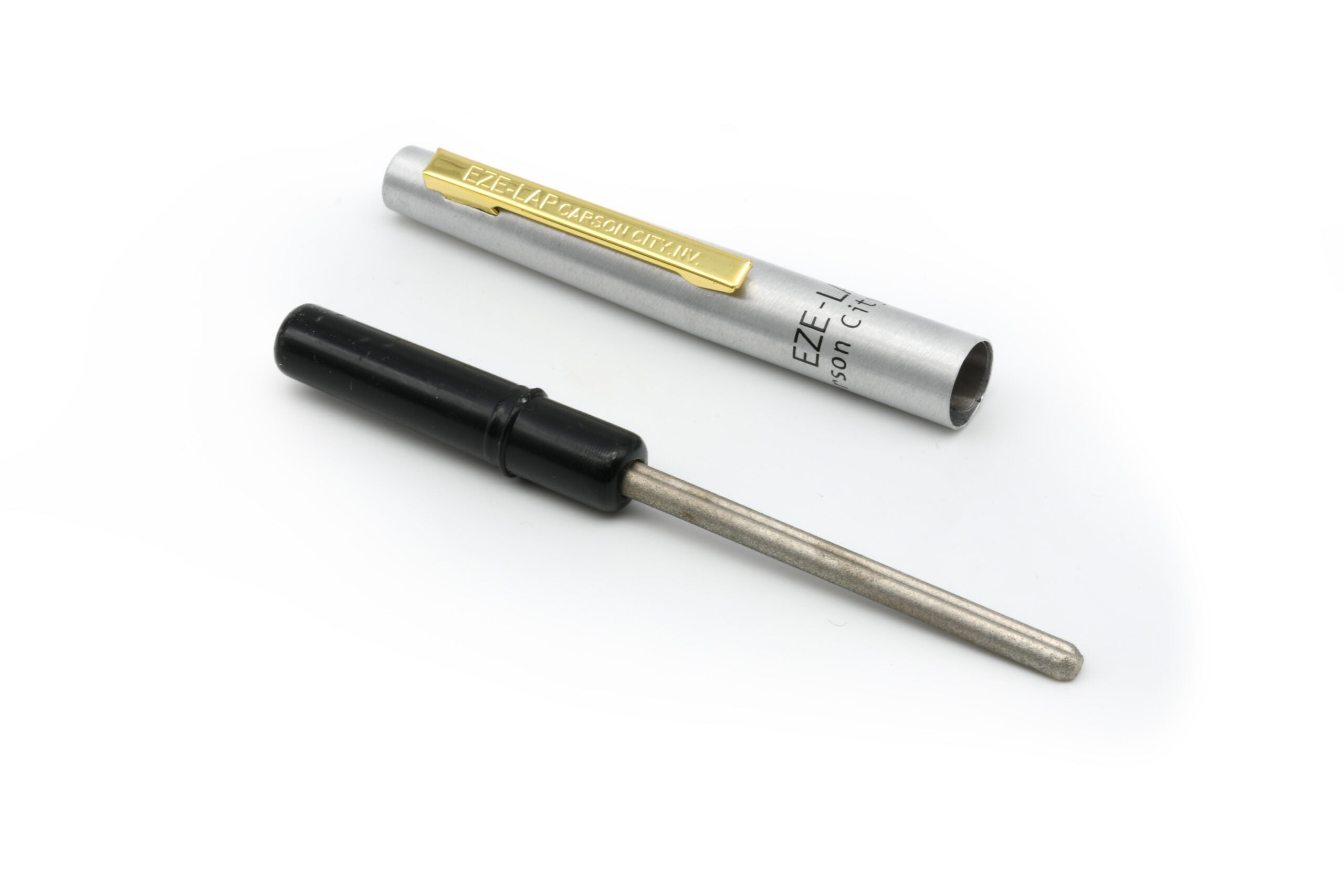 The EZE-LAP Diamond 'S' Type Shaft Hone has a 2 1/4" D shaped shaft with a high quality diamond surface. The pen-type cap can be used to extend the overall length to 5 7/16". It also has a pocket clip so it can be carried like a pen. The shaft has grooves for sharpening fishhooks. The diamond surface is Fine (600 grit).